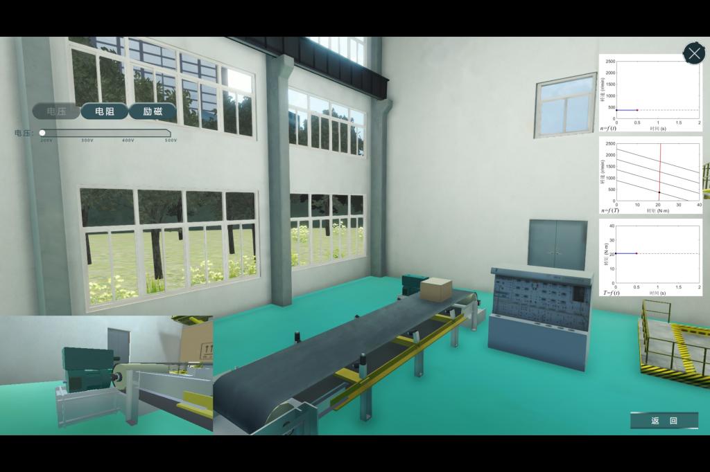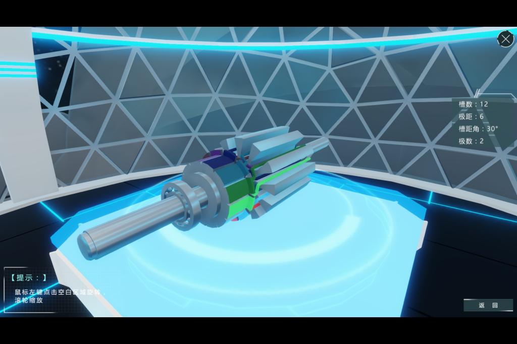 计算机虚拟现实教学软件主要包含三个模块:电机结构、电机绕组和电机调速。每种电机和绕组都可进行三维显示、旋转缩放和拆分组合。每种调速都显示有机械特性、转速随时间、转矩随时间三种曲线,可进行调速互动操作。