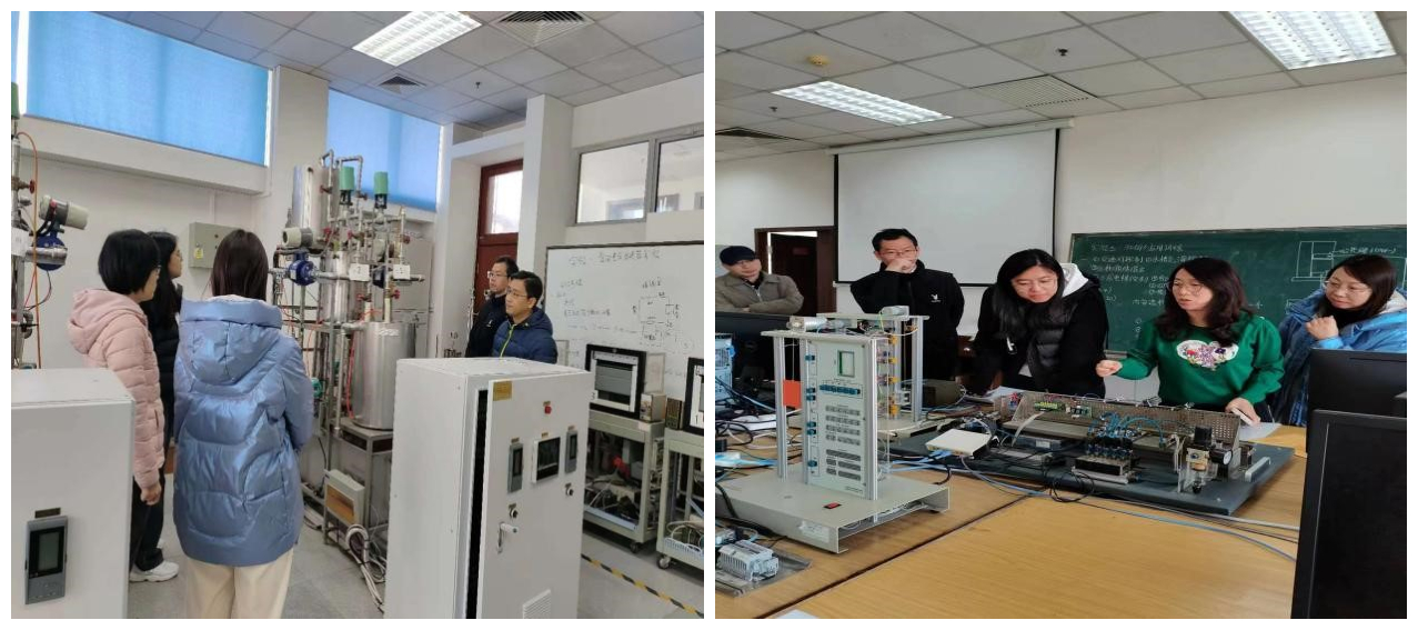 首先,过程装备及自动化实验室老师参观了自动化专业各实验室,教研室主任王宏伟老师介绍了实验室现状、课程设置和实验室未来发展;张继研、徐占国、王海霞三位老师介绍了实验课程特点、实验仪器设备和实验内容等。参观后,双方在C208实验室进行了讨论。经过双方两次交流活动,初步达成: