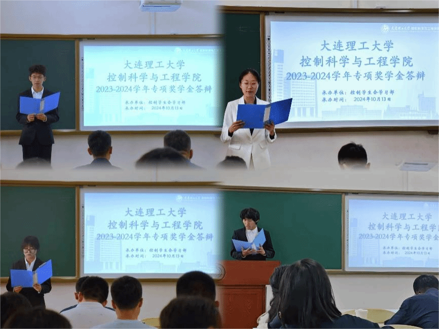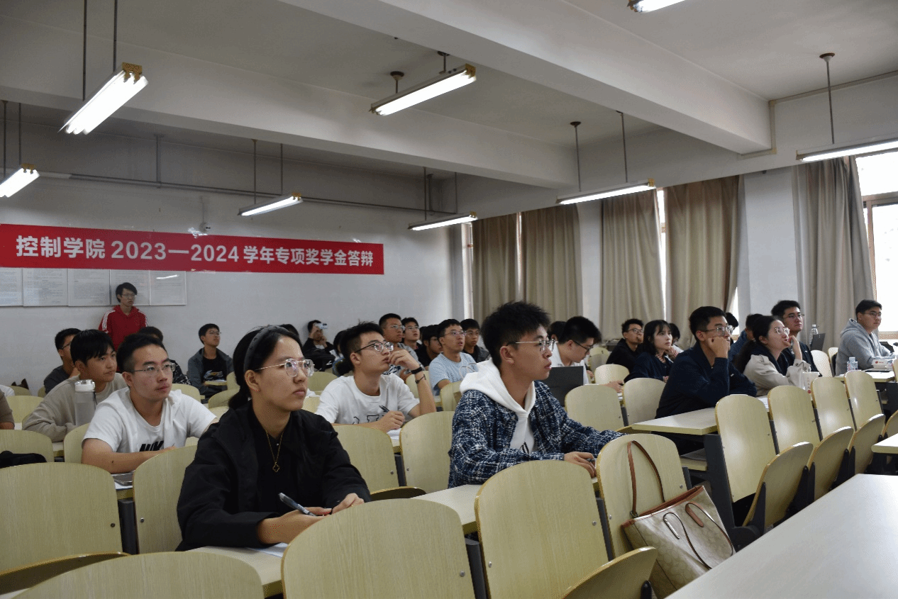 在综合教学1号楼361教室举行2023-2024学年本科生专项奖学金评审答辩会,答辩会评委由教师和学生代表组成。