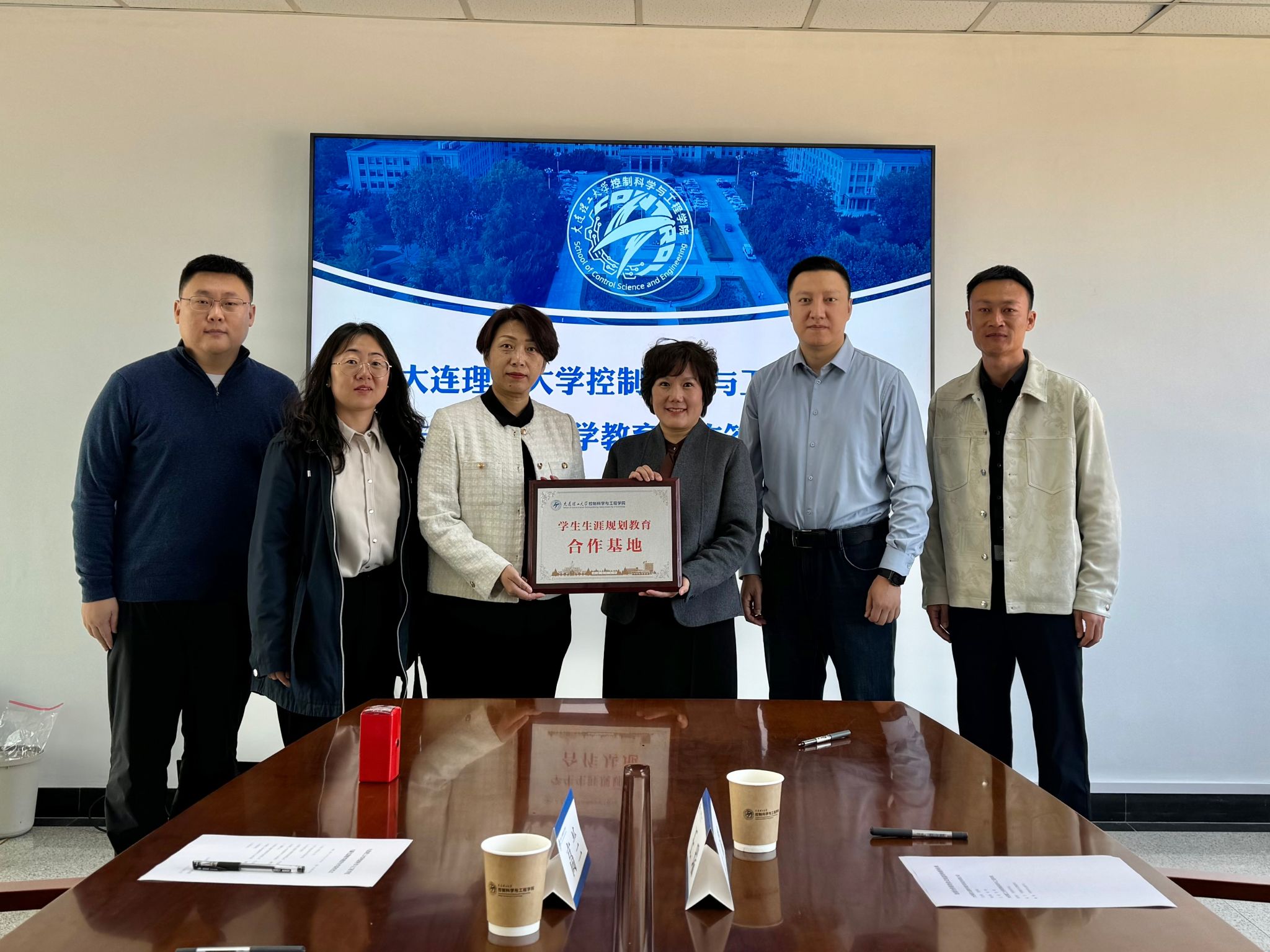 向大连新文道授予“学生生涯规划教育合作基地”牌匾。