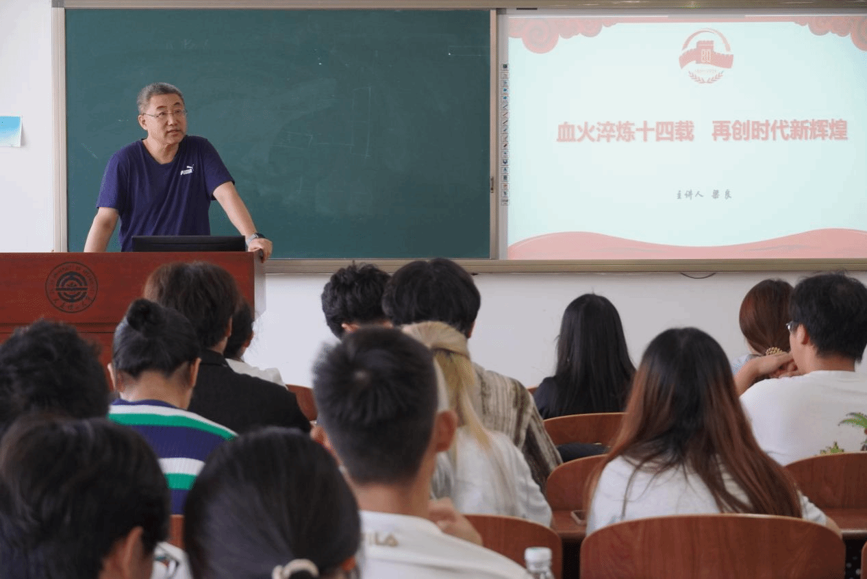 军事理论教研室主任梁良教授面向全体本科生党员、入党积极分子作“血火淬炼十四载,再创时代新辉煌”专题报告。梁良教授以翔实的案例讲述了14年抗战中可歌可泣的英雄故事,同时以鲜活的数据为同学们分析了当前国际形势,激励学生铭记历史、缅怀先烈,珍爱和平、开创未来,在实现中华民族伟大复兴的征程中贡献青春力量。