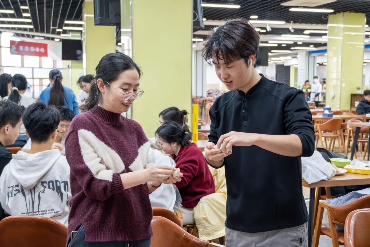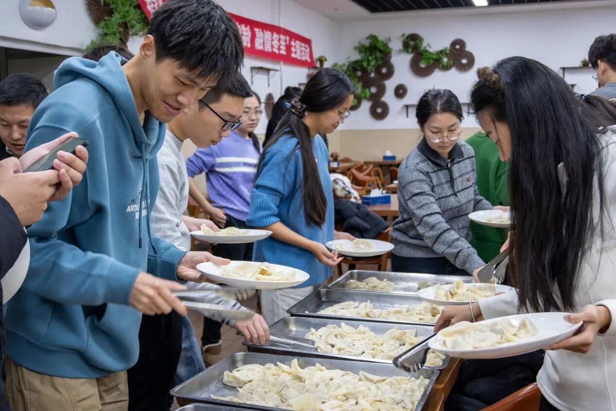窗外寒风渐起,窗内暖意融融。不久,热气腾腾的饺子出锅,同学们兴致勃勃地寻找自己包的那一份。在这一年中黑夜最长的一天,一碗碗热饺,不仅是美味的分享,更是对传统文化的美好重温。热气拂面,暖意入心,饺子的温度驱散了冬寒,也温暖了每一个离家学子的心怀。