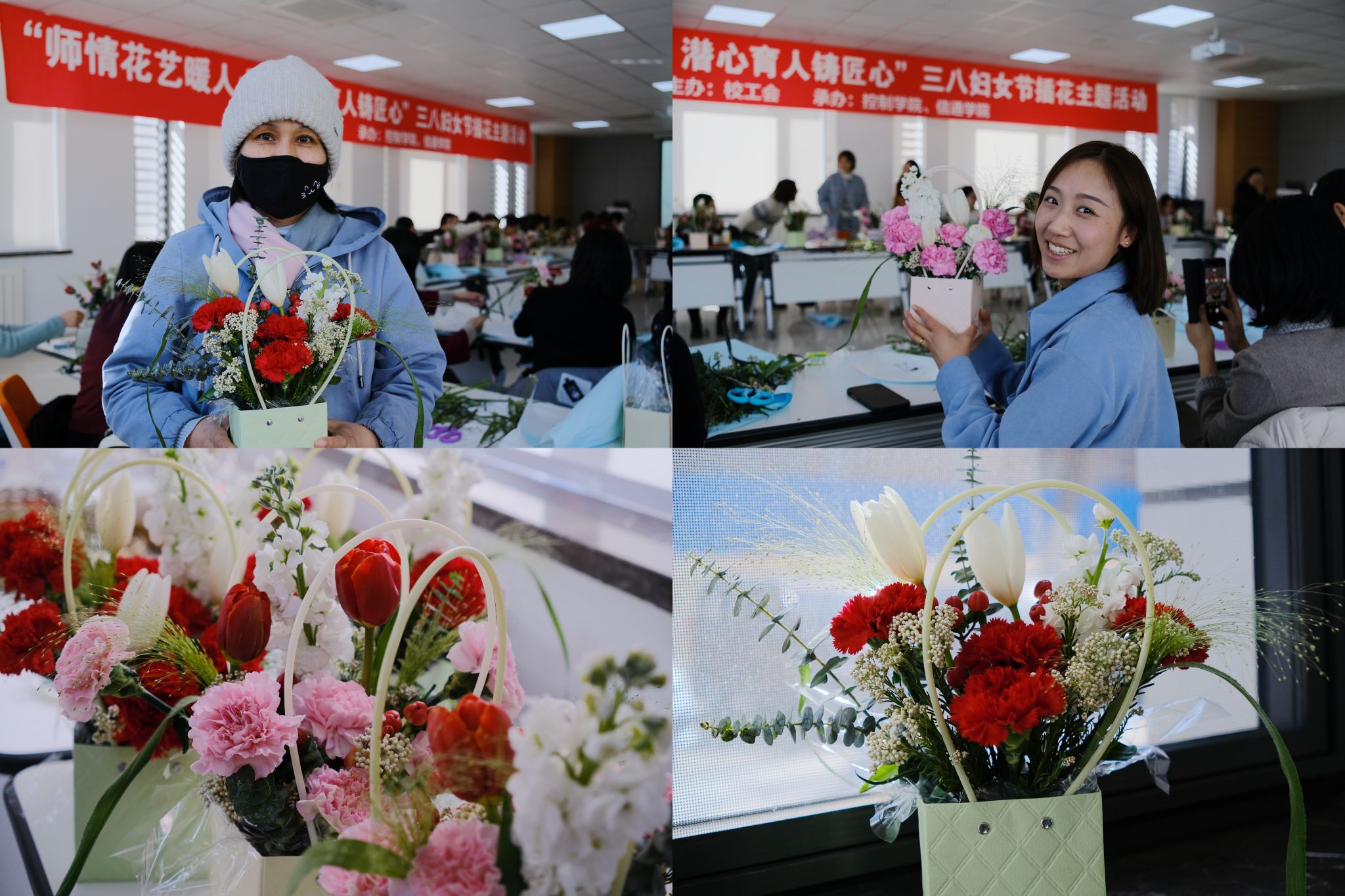 品一缕花香,感一丝情暖。此次活动不仅让女性师生们在感受美、欣赏美、创造美的过程中度过了一个愉快充实的节日,还学习了插花技巧,提升了艺术修养,提高了审美情趣,激励着广大女性师生凝聚奋进力量,展现巾帼风采。