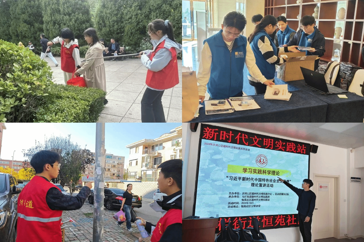 11月中旬,实践团走进沙河口区恒苑社区,开展了一场别开生面的新时代文明实践系列活动。成员以“学习实践科学理论”为主题,与社区居民共读习近平新时代中国特色社会主义思想,携手探索新时代的智慧与力量。活动中,成员化身环保使者,向居民传授垃圾分类的精髓,以行动践行绿色生活;清理社区的小广告,整理社区图书角,为居民提供一个更加温馨、有序的阅读空间。
