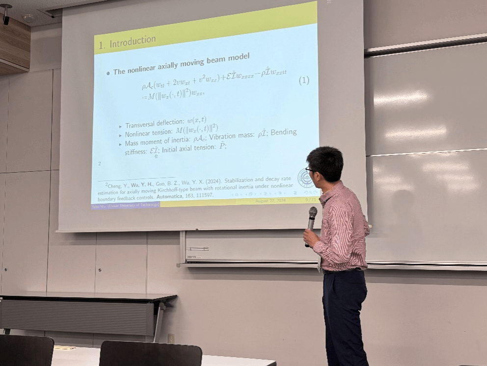 吴玉虎教授受邀作为大会科学指导委员会委员,受邀为大会进行主题汇报,汇报主题为“Boundary control of nonlinear flexible beams”,就柔性梁的边界控制进行了报告,并就自适应控制、车辆控制、无人机控制、数据驱动建模、人工智能等理论方法和工程应用与会议代表进行深入的交流并商谈后续课题合作。此外,吴玉虎教授在访问期间对沙巴体育