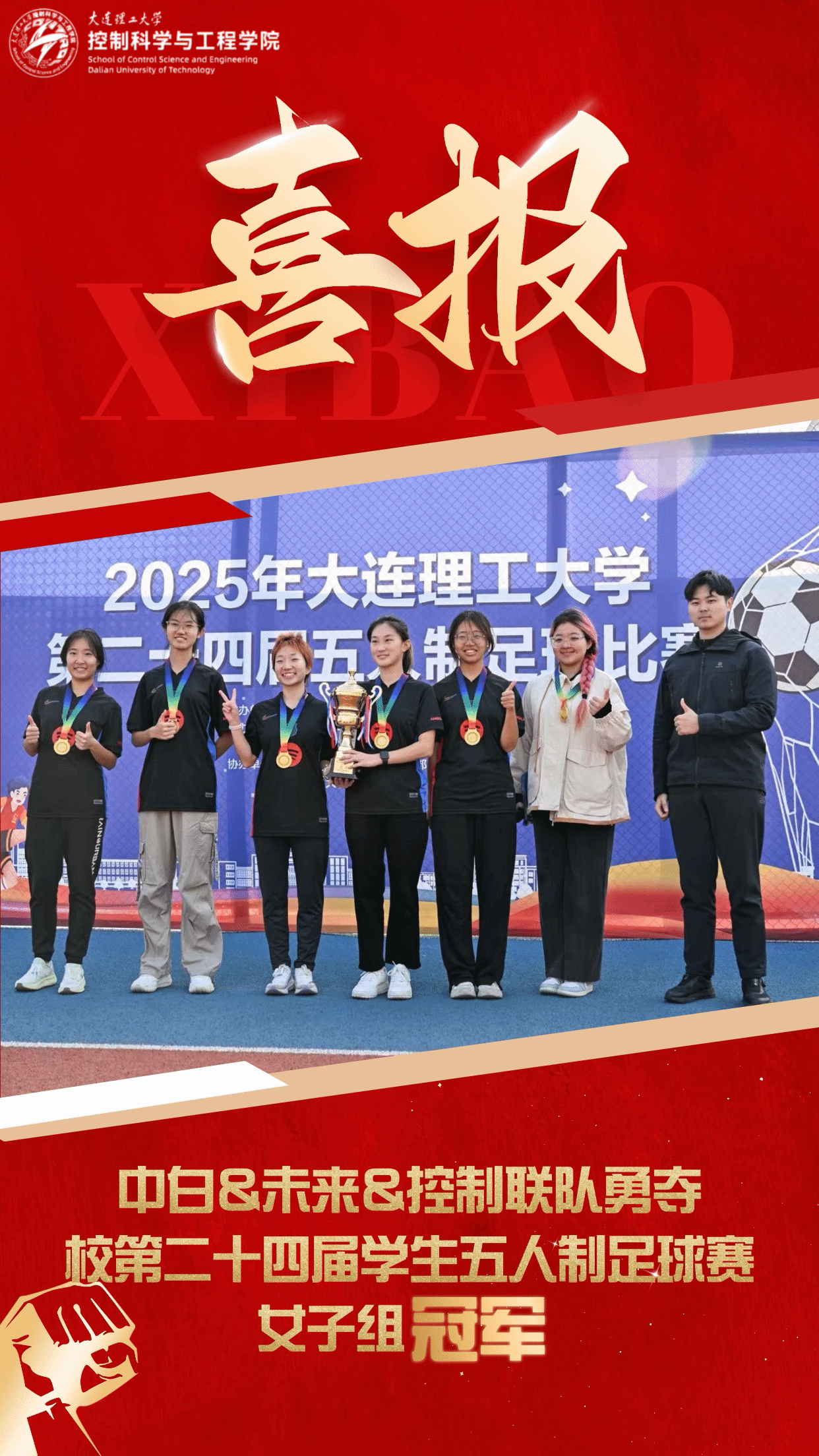 冬日暖阳映照绿茵,沙巴体育 第二十四届五人制足球赛圆满收官。沙巴体育 的足球健儿们满怀热爱,以激情与汗水在赛场上奋力拼搏,捷报终传。控制中白未来联队勇夺女子组冠军!控制计科联队斩获男子甲级组亚军!