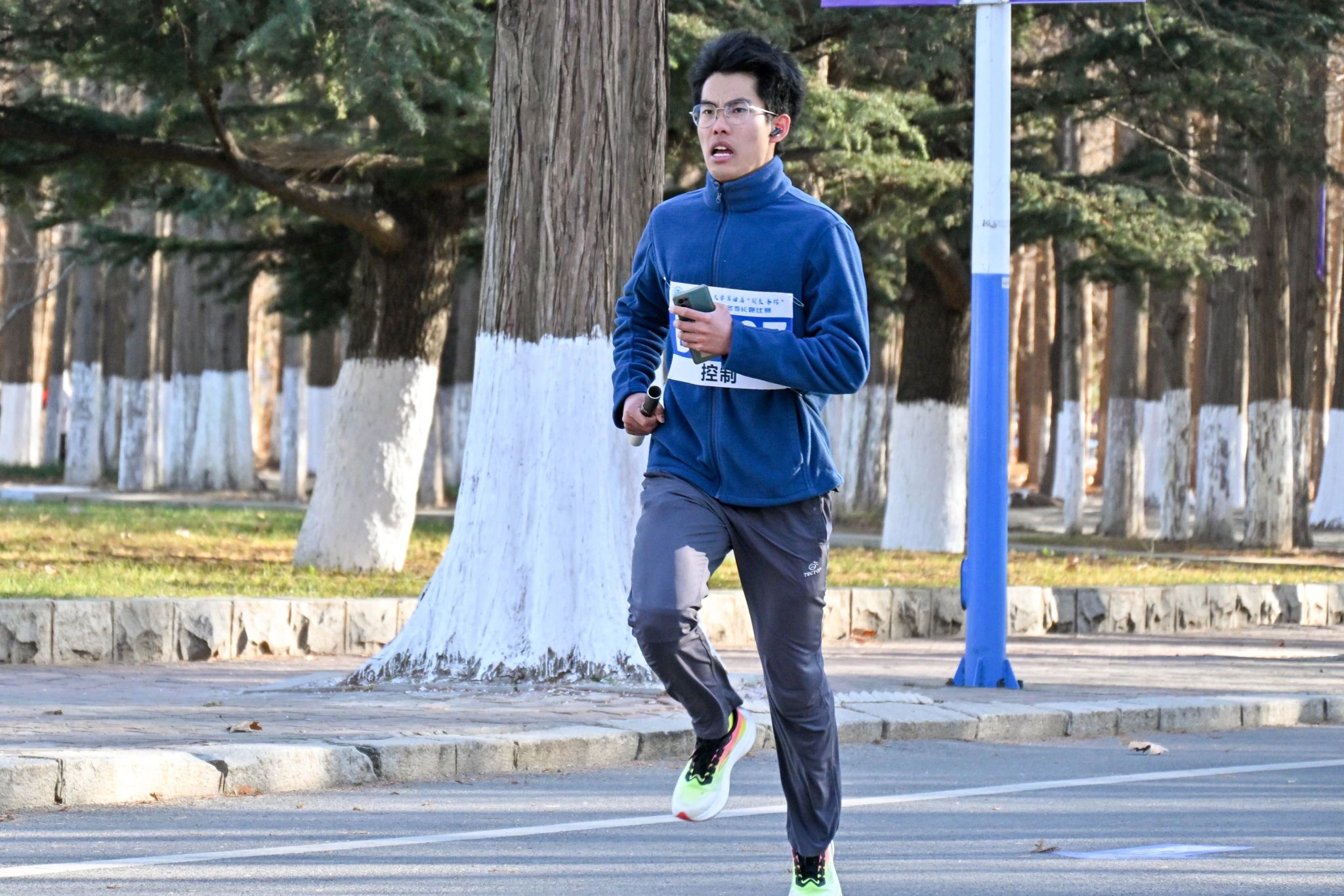 发令声响,首棒选手如箭离弦。脚步踏响寒风,呼吸在空气中凝成白雾,每一次摆臂都带着为团队开局的决心。