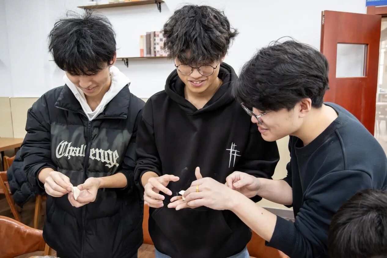窗外寒风渐起,窗内暖意融融。不久,热气腾腾的饺子出锅,同学们兴致勃勃地寻找自己包的那一份。在这一年中黑夜最长的一天,一碗碗热饺,不仅是美味的分享,更是对传统文化的美好重温。热气拂面,暖意入心,饺子的温度驱散了冬寒,也温暖了每一个离家学子的心怀。