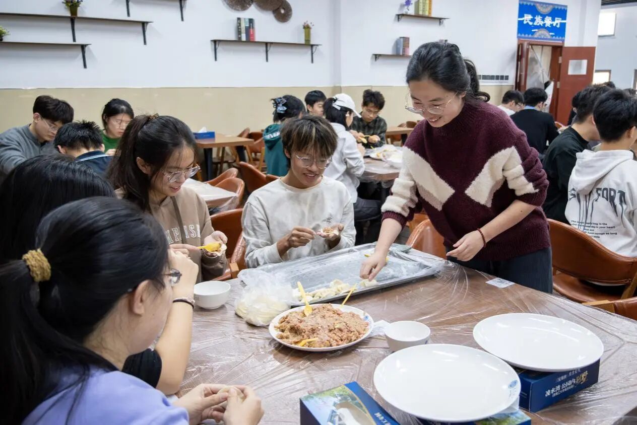 活动最后,师生一同合影,笑颜与温情在快门声中永久定格。这场冬至之聚,不仅让同学们体验了亲手包饺子的乐趣,更让大家在“红炉小雪,围坐暖热”之间,触摸到流转千年的节令诗意。热气氤氲,笑语盈盈,仿佛古老节气正借着今日的青春身影,发出温暖而明亮的回响——冬已至,春不远,我们在一起,便是节日的意义。