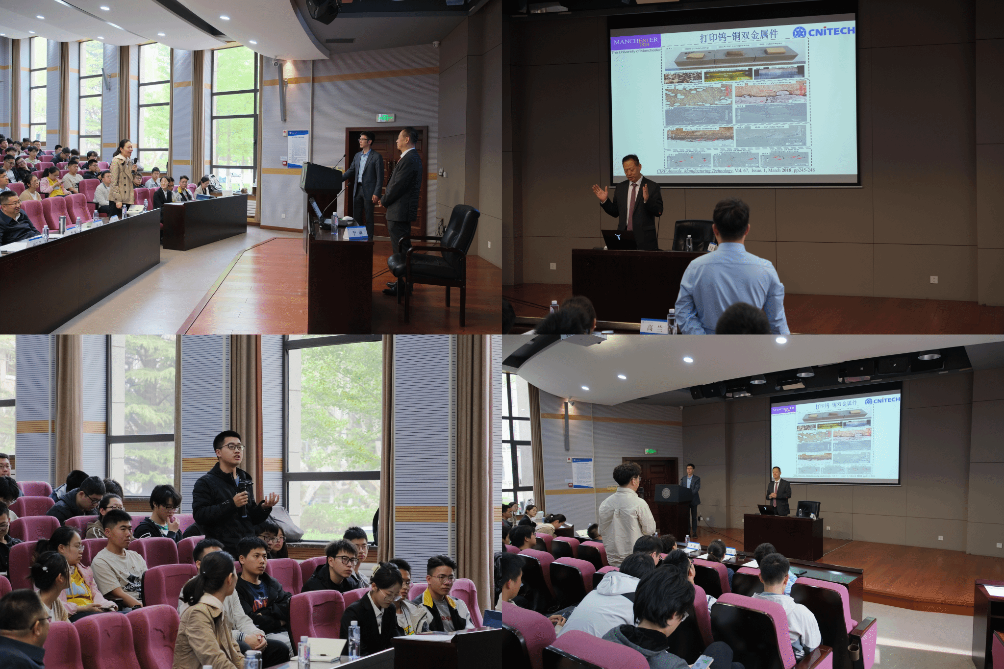 李琳院士在报告中介绍了将超声定点送粉、定点吸粉与激光选区熔化结合,探讨了基于激光选区熔化增材制造多材料零件的新方法,使不同材料的优点集成到一个零件,使零件的指定区域具备特殊性能。报告中李琳院士与现场师生分享了自己的求学科研经历,谈及求学之路,李琳院士真诚建议“在大学里,比学到专业知识更重要的是学会如何学习知识、获取知识”;谈及科研之路,他以自身经历为例勉励在场师生要做别人认为不可能的事情,要大胆设想。同时,在五四青年节之际,李琳院士寄语在场师生要砥砺奋进,中国的科技发展和国际地位都要依靠青年的努力。